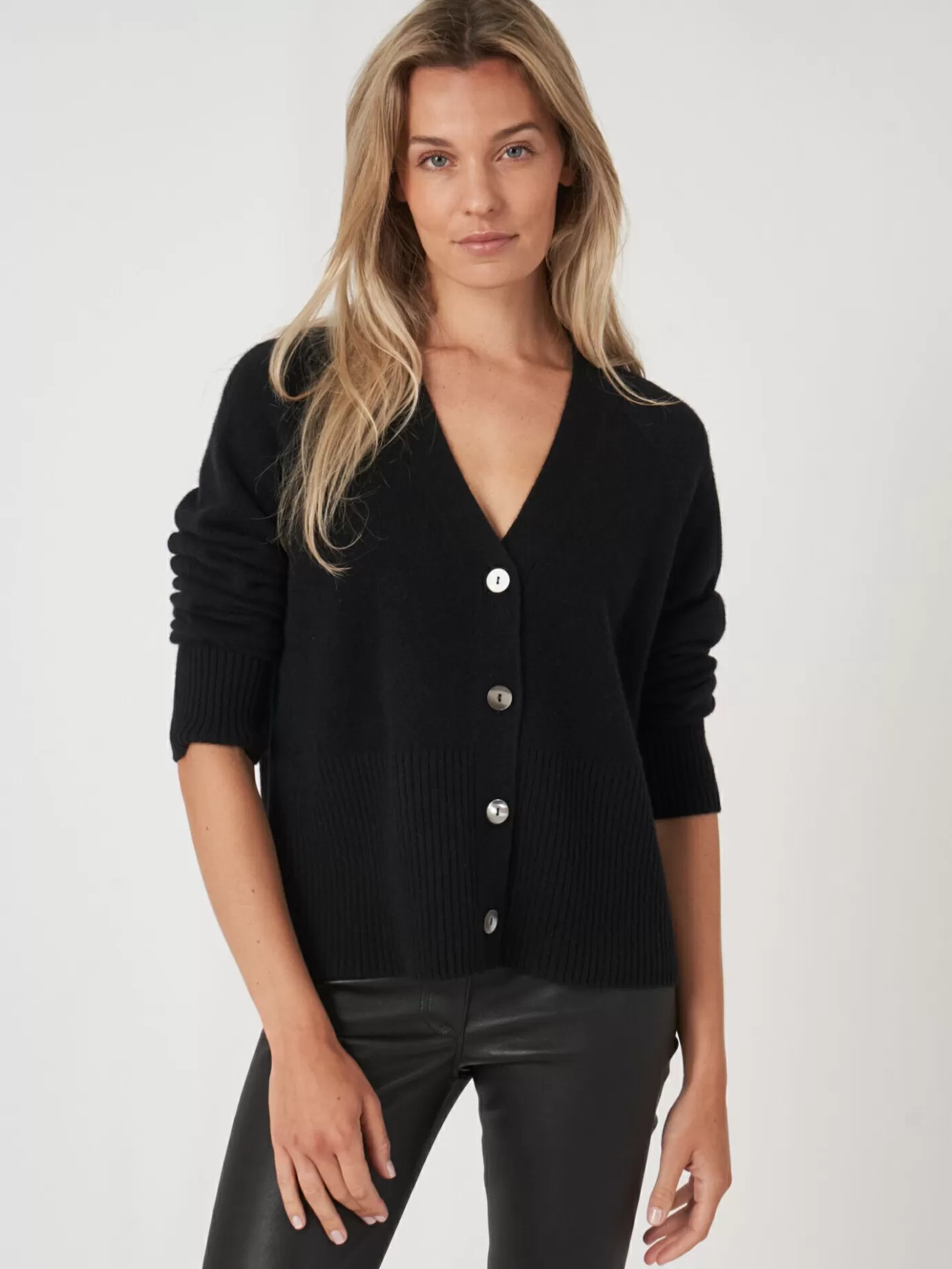 REPEAT cashmere Vesten<Geknoopt Cashmere Vest Met Geribde V-Hals Zwart