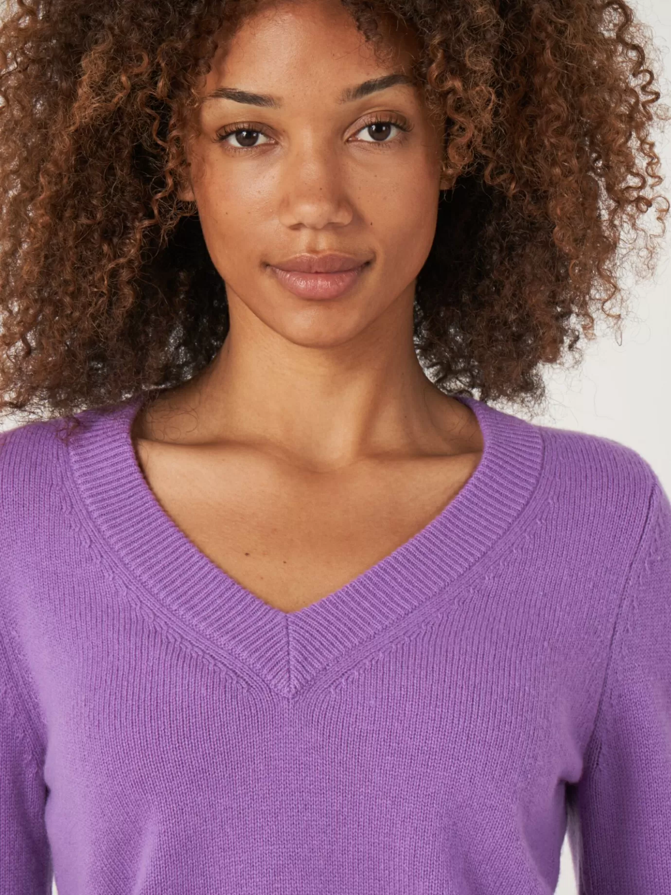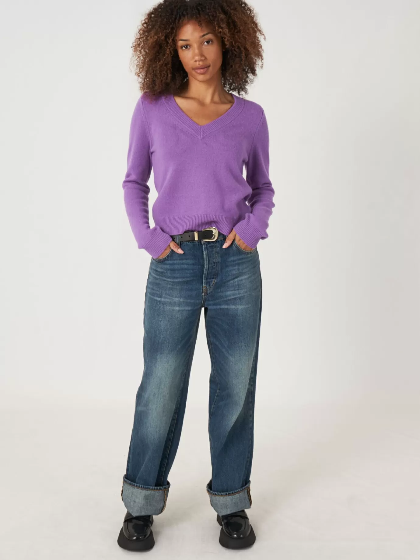 REPEAT cashmere Truien<Korte Cashmere Sweater Met V-Hals Lila